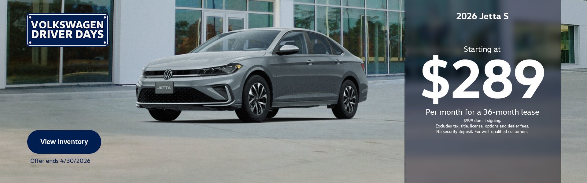 For 36 months and 10,000 miles. $999 Down. MSRP: $25,685, Selling Price: $24,866. VIN: 3VW5W7BU2TM016194. $999 due at signing. For highly qualified customers through Volkswagen Financial Services. See dealer for details.